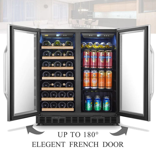LanboPro LP66B 30-inch wide 31 Bottle/58 Can Dual Zone Dual Door Hybrid Wine- and Beverage Cooler